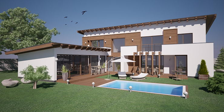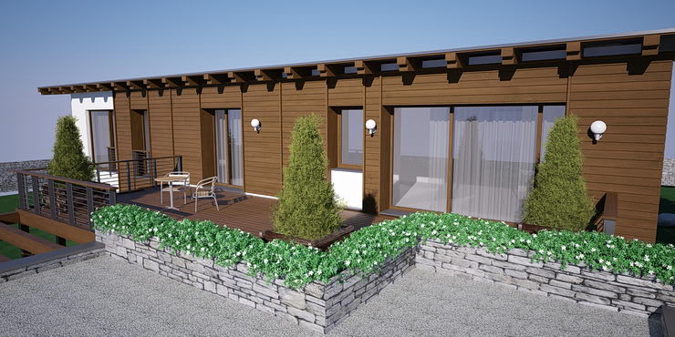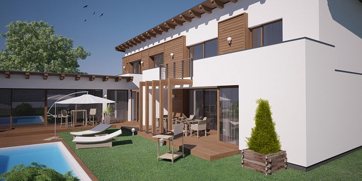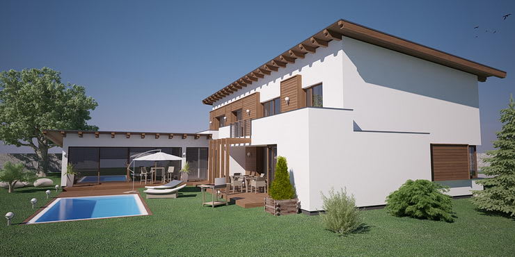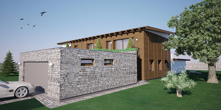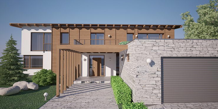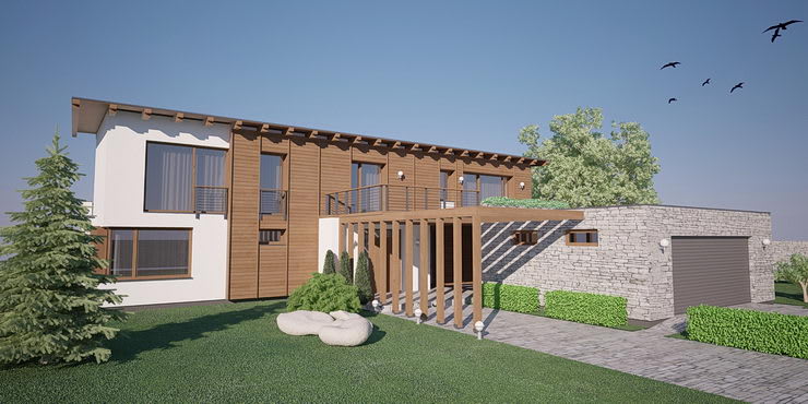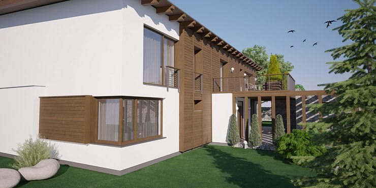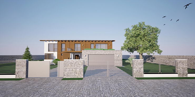 Investor kúpil rozostavaný objekt rodinného domu. Ateliér bol oslovený na dotvorenie nedokončenej fasády. Bol použitý drevený obklad v kombinácii s omietkou. Drevo krásne kontrastuje s bielou farbou omietky.