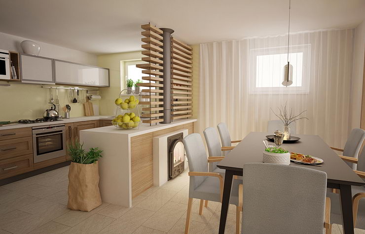 Interiér rekonštruovaného domu v príjemnom prostrdí zelene. Cieľom bolo vytvoriť domov s pocito tepla a bezpečia.
