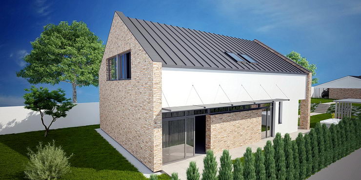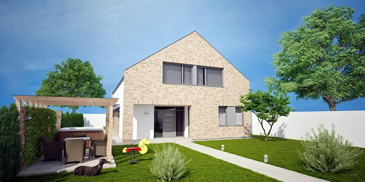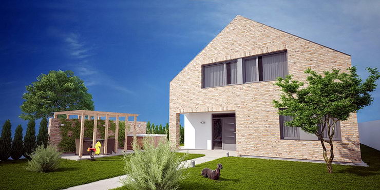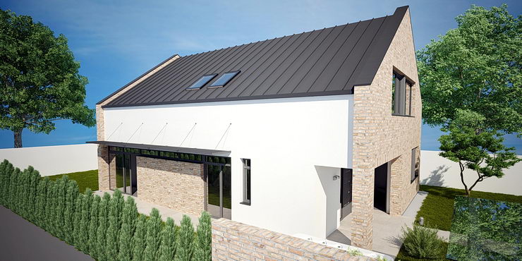 Moderný Dom so štítovým murivom pre mladú rodinu.