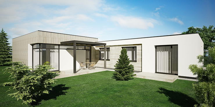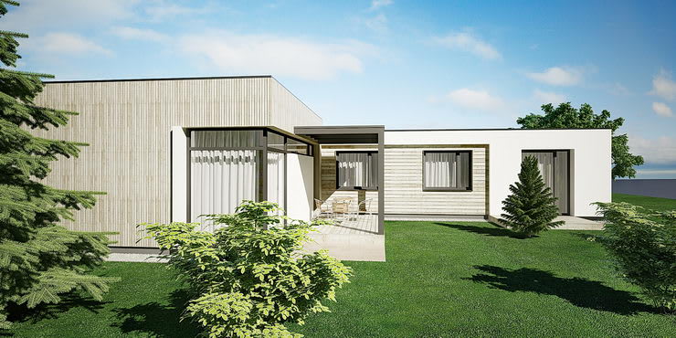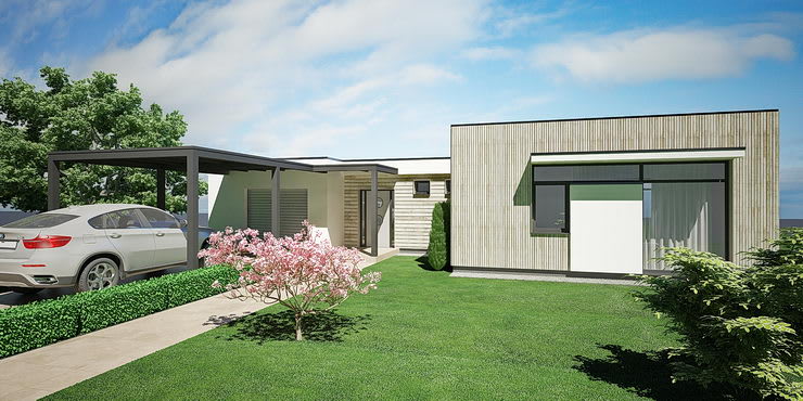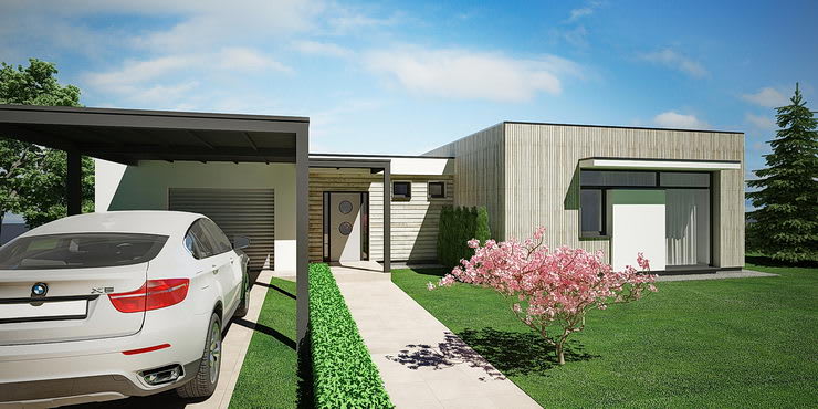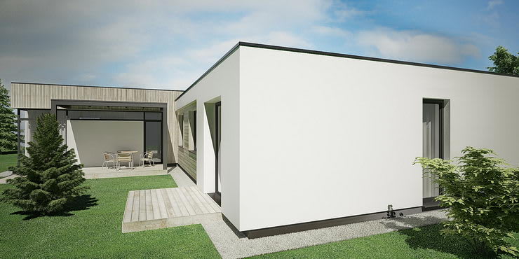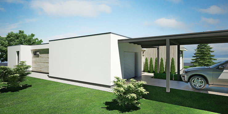 Moderné vyznenie domu vychádza z jednoduchého hmotového prevedenia. Fasáda je z časti obložená dreveným obkladom kontrastujúcim s oceľovými prvkami a bielou omietkou.
